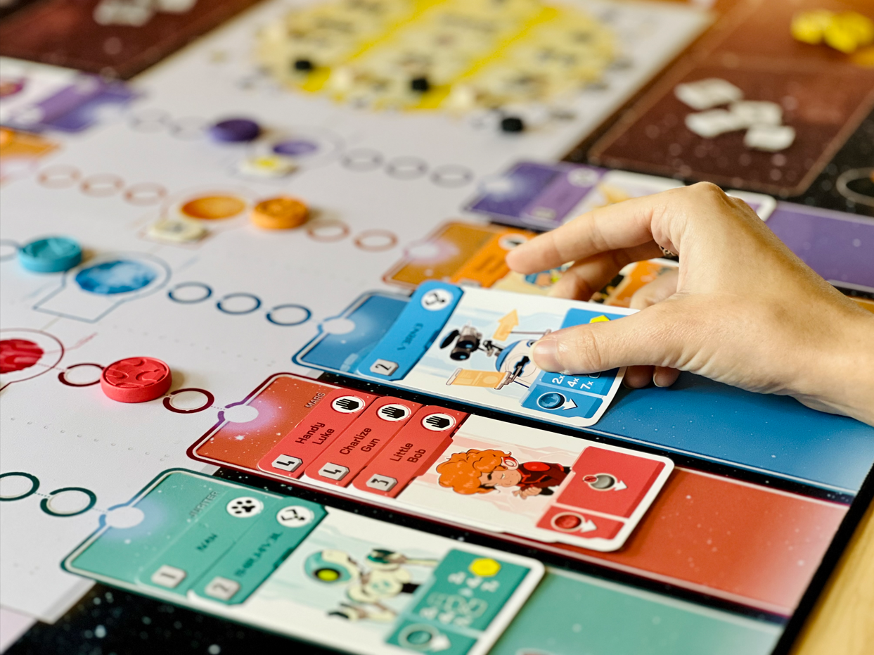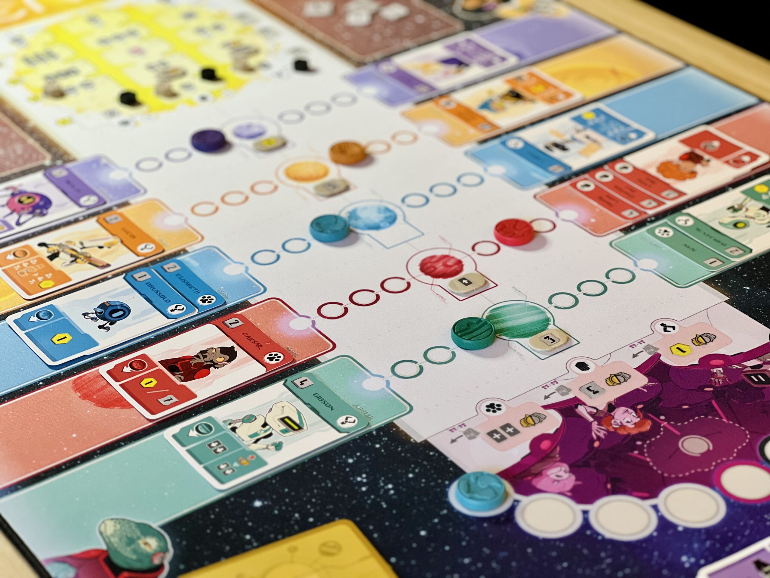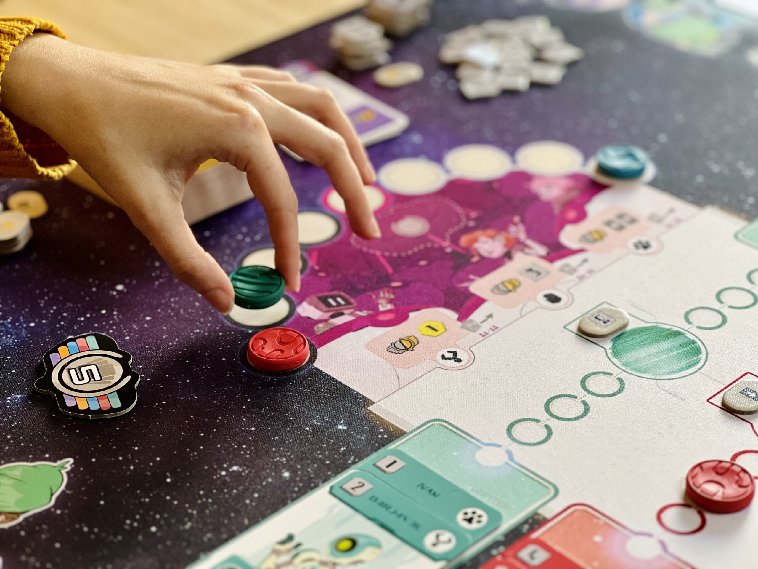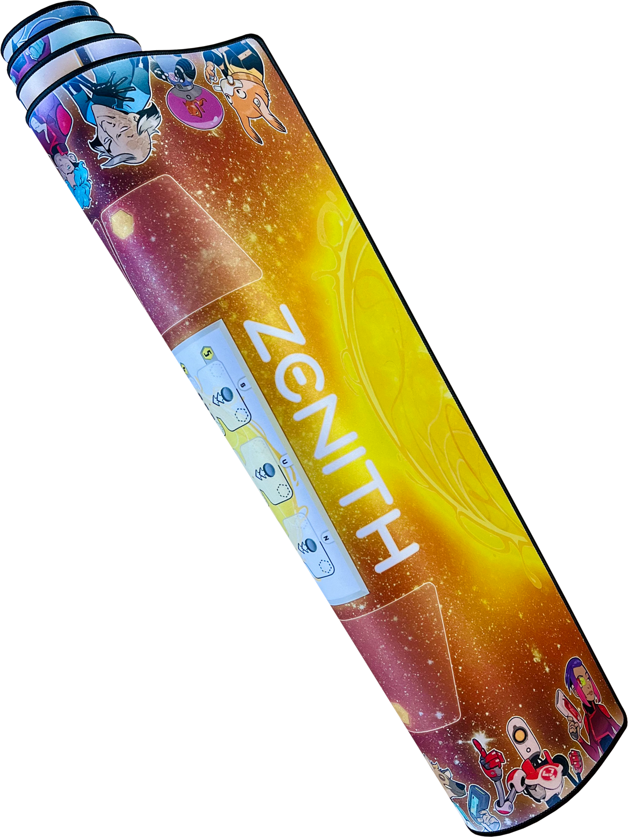 Portée par l’envie de rendre l’expérience de jeu toujours plus intense et immersive, Wogamat s’associe à PlayPunk pour offrir aux joueurs et joueuses de Zénith des parties augmentées : sur un fond stellaire, le plateau de jeu est éclatant, prolongé de chaque côté par des pistes colorées pour poser clairement vos agents par planète. Chaque élément épouse parfaitement l’emplacement qui lui est réservé : cartes, jetons, crédits, zénithium…