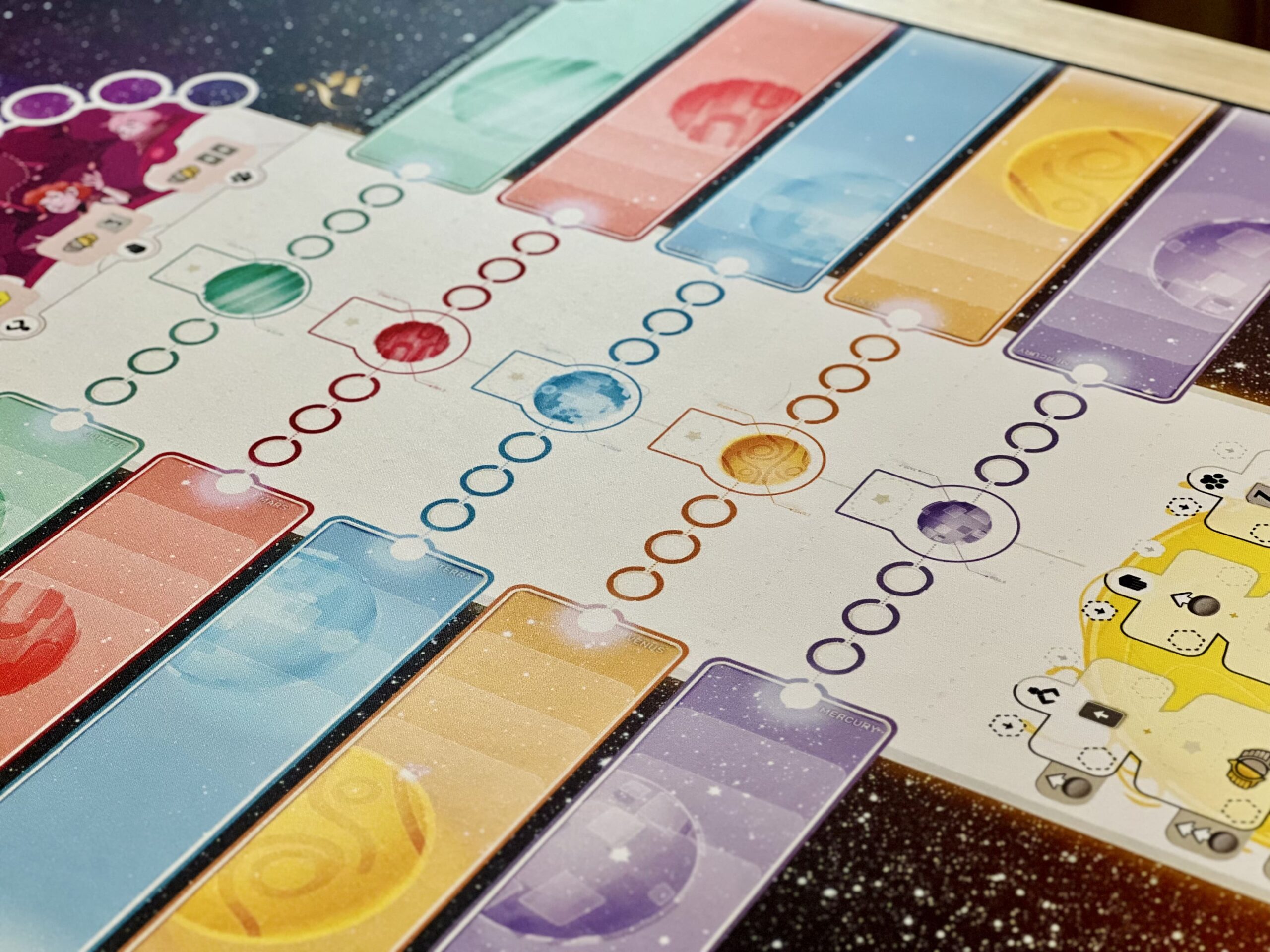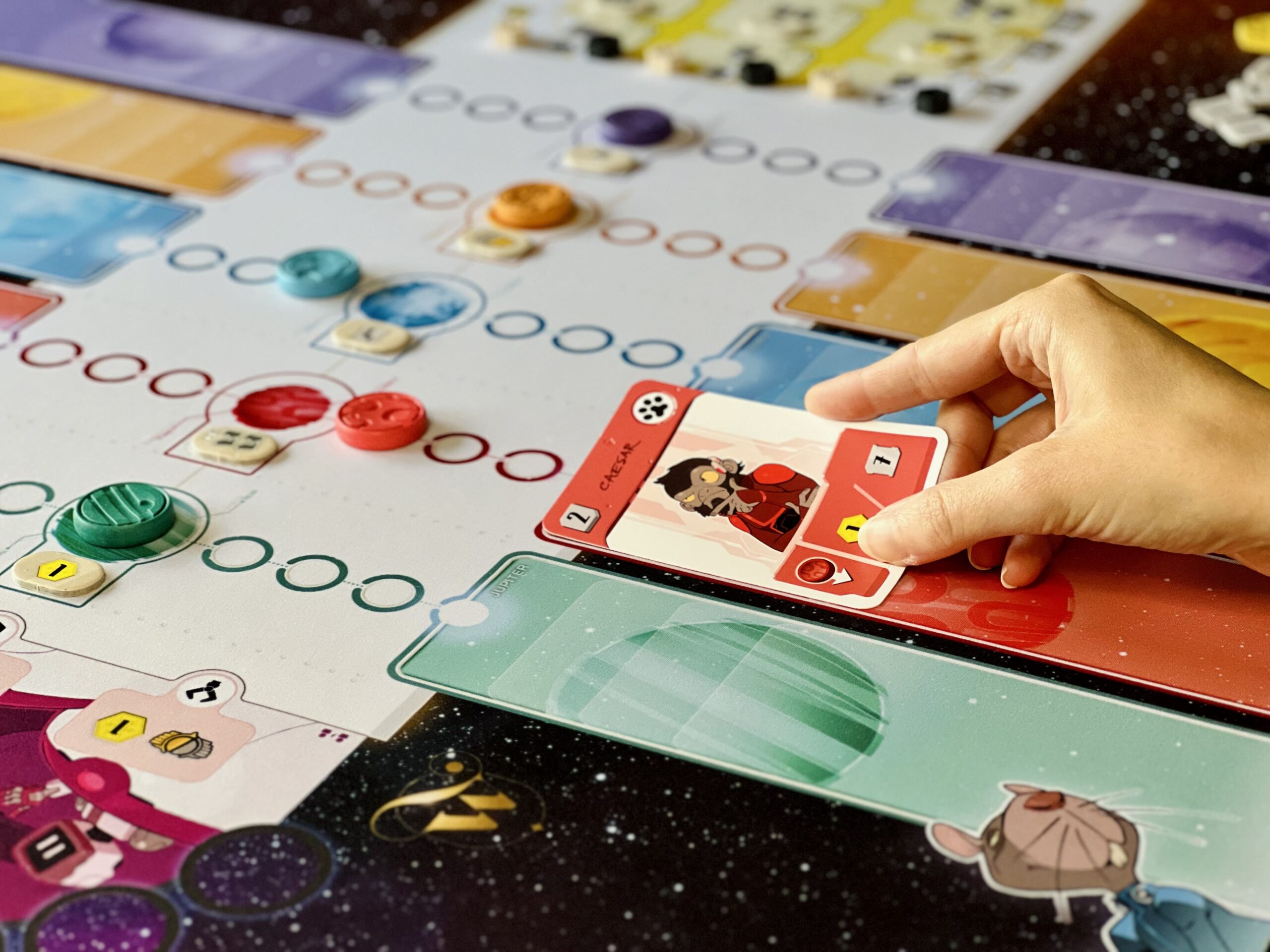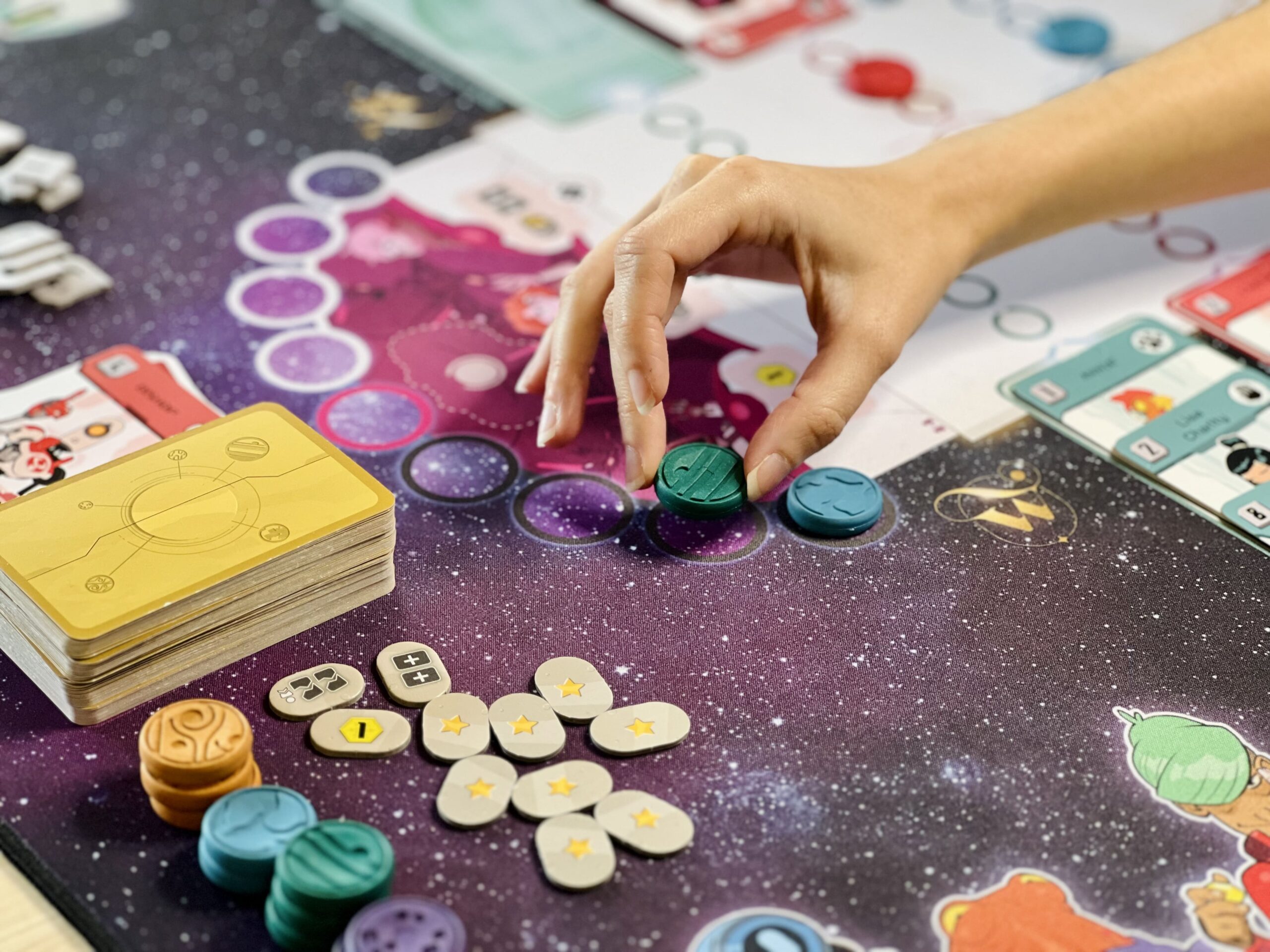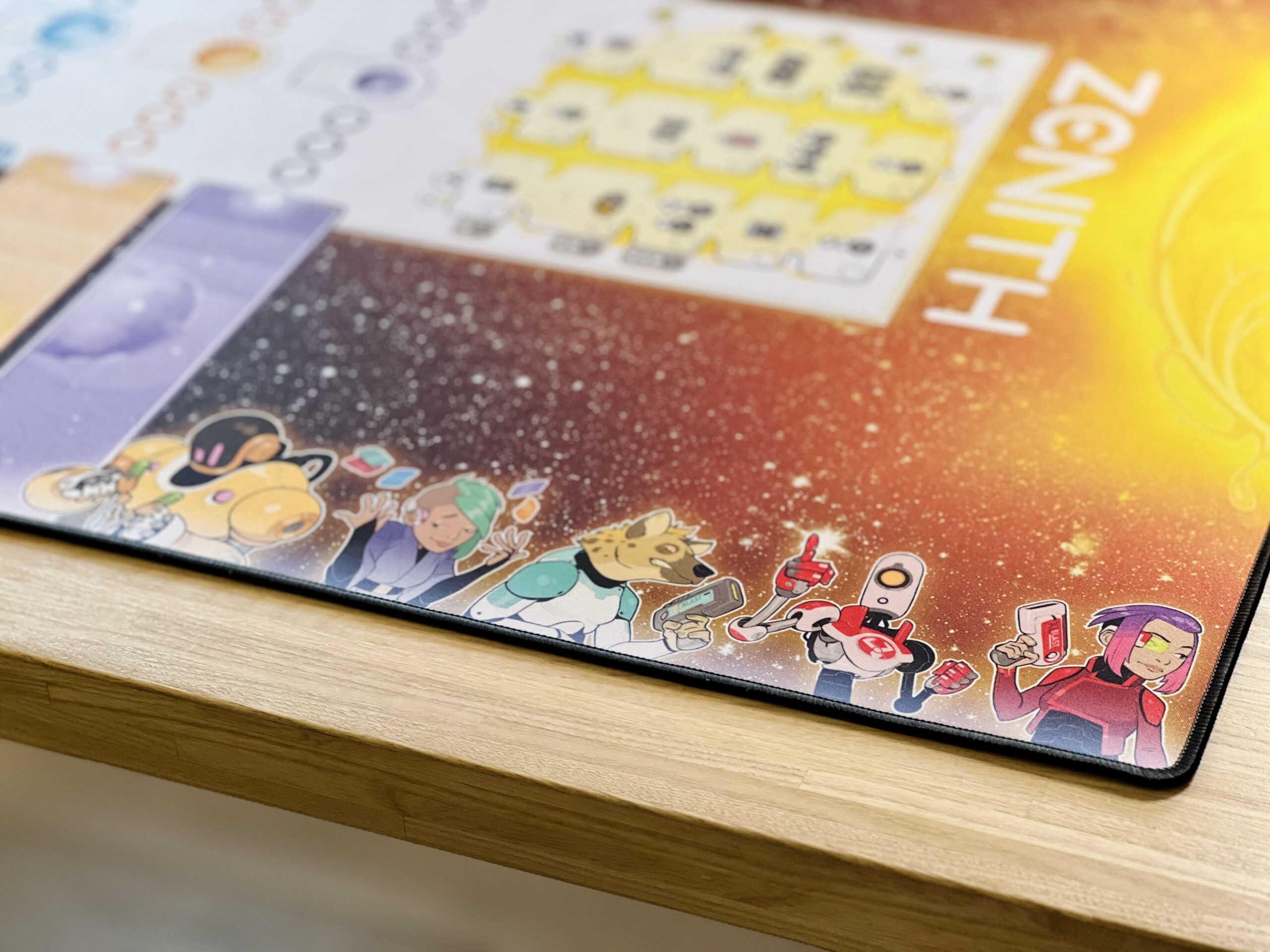 Portée par l’envie de rendre l’expérience de jeu toujours plus intense et immersive, Wogamat s’associe à PlayPunk pour offrir aux joueurs et joueuses de Zénith des parties augmentées : sur un fond stellaire, le plateau de jeu est éclatant, prolongé de chaque côté par des pistes colorées pour poser clairement vos agents par planète. Chaque élément épouse parfaitement l’emplacement qui lui est réservé : cartes, jetons, crédits, autres zénithium…